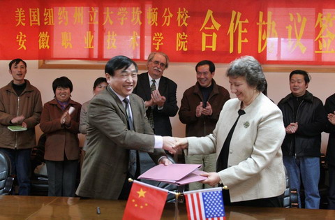 去年12月11日,我院和纽约州立大学坎顿分校正式签订了《合作备忘录》,根据双方合作协议,我院商务英语、酒店管理、计算机技术等专业的学生在完成学业后,通过雅思考试,即可快捷实现赴美留学深造。(外事办)(20080625)
