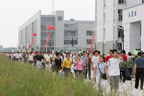9月6日、7日两天,近4000名高职新生相继来到新校区报到,原本空旷而略显冷清的校园顿时显得如集市般热闹。各接待台前,人头攒动,围满了咨询和报到的人群。引导、接待、咨询、报到、收费、发卡、分发公寓用品各环节紧张忙碌而有条不紊。接待人员服务热情、周到细致。据最新统计,今年新生报到率将近90%,比去年高12个百分点,