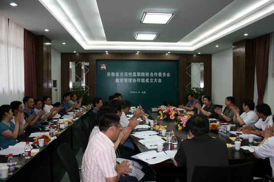 安徽电气工程职业技术学院陈祥明院长首先致欢迎辞。陈传海院长代表“A联盟”管理委员会致辞。会议通过了《安徽省示范性高等职业院校合作委员会教学管理协作组工作职责》。