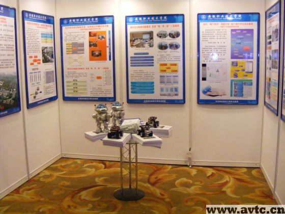 学院对本次会议高度重视。院领导多次召开会议,对参加会议的有关工作进行筹备部署。本次会议在“全国高职院校教学改革成果展”版块除要求第一批28所示范院校必须参展以外,还设置了15个自由展区,由全国第二、第三批示范院校自由申报,择优选用展出。学院本着“走出去,亮出自己,虚心学习”的原则,积极申报。在竞争激烈的情况下,学院最终以特色的内容、优美的设计获得了在自由展示区的展位,争取到了在全国高职院校展示自我的宝贵机会。学院自由展示区由九块展板组成,分别展示了学院总体概况、校企合作、课程改革、实验实训、示范引领、创业教育、社会服务、学生技能大赛获奖等方面内容;在自由展示区,学院还展示了示范建设成果:各专业自编教材、学生制作的机器人,现场散发了反映学院发展概况的画册。学院自由展示区吸引了来自全国各地的高职院校代表,受到了各位代表的良好评价。