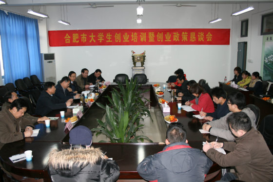 2010年元月12日下午,合肥市在我院召开大学生创业培训及创业政策恳谈会。合肥市劳动局就业处处长卢磊、市劳动局培训中心主任李业干、综合科长程长风、庐阳区创业服务中心主任童有文等出席会议。我院党委书记方徽聪、院长陈传海以及我院创业培训教师团队、我院正在创业的毕业生代表和有创业愿望的学生代表等参加恳谈会,副院长马纯主持会议。