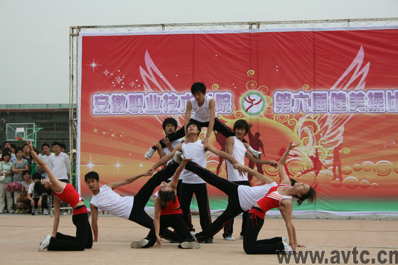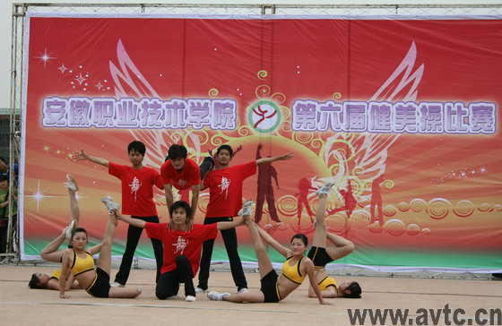 5月19日下午,188bet足球比赛结果分析第六届健美操比赛在新区篮球场举行。副院长徐才华、马纯、李雪,学生处、团委、保卫处等负责人和各系部党总支书记参加了此次比赛的开幕式并观看了比赛。中国科技大学徐雄杰老师、国际商务学院蔡红老师、安徽工业经济学院陈照春老师及学院全体体育教师应邀担任此次健美操比赛的评委。比赛由公共教学部刘健主任主持。