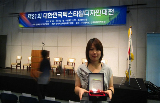 日前,我院赴韩国韩瑞大学留学深造的汪菁同学获得韩国全国织物设计大赛机关奖(相当于中国的优秀奖),在所有获奖选手中,汪菁是唯一一名获奖的外国学生。