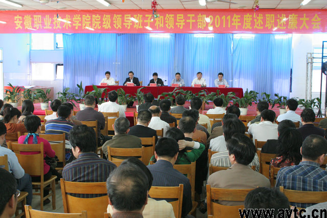 党委副书记、院长陈传海代表学院行政班子作2011年度述职述德述廉报告时指出,2011年,在省委教育工委和省教育厅的正确领导下,学院行政领导班子深入学习实践科学发展观,着力内涵建设,推进科学发展,学院各项事业取得了新的成绩。他从教育教学改革不断深入,人才培养迈上新台阶;技能培训和资格鉴定工作扎实开展,学院品牌逐步凸显;师资队伍建设继续加强,队伍结构进一步优化;“十二五”规划颁布实施,发展方向进一步明确;服务育人扎实推进,学生工作务实有效;招生势头良好,就业成效明显;校园基础建设扎实推进,财务、后勤保障能力不断提升;校园综合治理常抓不懈,文明创建取得标志性进展;坚持党委领导下的校长负责制,落实廉政建设责任制等方面全面总结了一年来学院各项事业取得的成绩。