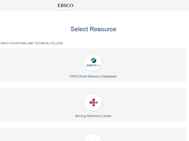 1、 输入访问网址:http://search.ebscohost.com/ ,在出现的登录页面的蓝色Sign In按钮下方点击Institutional Login。