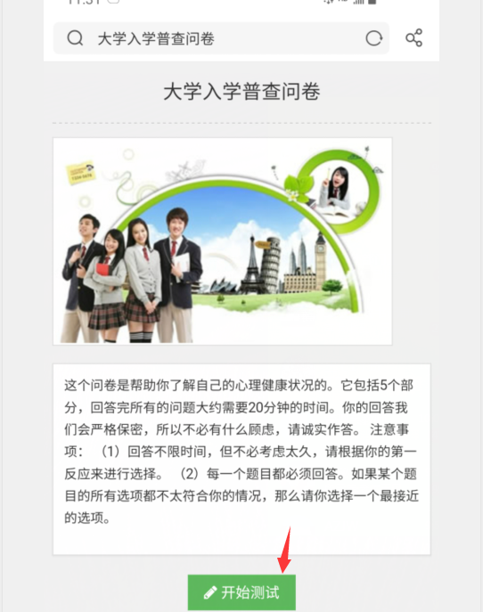 为进一步落实教育部和省教育厅有关文件精神,更好地开展大学生心理健康教育工作,根据国家卫健委印发的《新型冠状病毒感染的肺炎疫情紧急心理危机干预指导原则》,学院专门开通在线心理测评服务,帮助大家以平稳的心理状态应对疫情期间的学习、生活和工作。