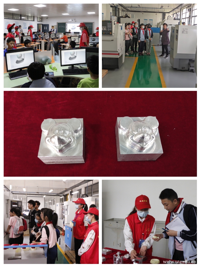 活动当天,机械学院开放了数控加工实训室和模具设计CAD/CAE实训室,供小朋友们参观体验。在模具设计实训室,在专业老师的指导下,小朋友们体验了当一个“小小设计师”的感觉。在数控加工实训室,专业老师们现场进行了数控铣削、数控车削加工操作,向同学们展示了加工过程及产品。通过参观体验,小朋友们对数控加工技术表现出浓厚的兴趣。