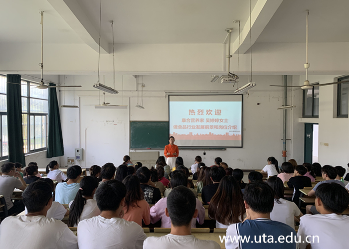 我院今年还创新专业教育形式,邀请了盛世康禾生物技术有限公司人事经理吴婷婷为新生进行食品行业前景和自我规划介绍。吴婷婷结合当前食品行业形势,分析了食品专业的就业前景和发展方向,勉励学生在校期间要珍惜时光,认真学习,积极参加活动,培养高情商,提高职业素质,为以后更好地学习、生活奠定良好基础。