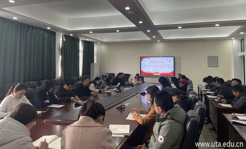 12月8日下午,纺织服装学院在纺织楼403会议室召开全体教职工大会,学院党总支副书记袁晓玲、副院长张文徽、组织员汪煦及全体教职工参加会议。会议由袁晓玲主持。