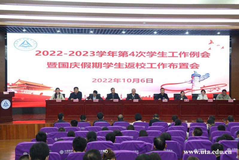本网讯(学生处通讯员 刘礼文 李劲峰)为扎实做好国庆假期学生返校工作,10月6日上午,学院在图文信息中心三楼报告厅召开2022至2023学年第4次学生工作例会暨国庆假期学生返校工作布置会。党委书记李方泽,党委委员、副院长宣岩松,相关职能处室负责人,各二级学院党总支负责人、团总支书记、全体专兼职辅导员参加会议。会议由学生处负责人余搏立主持。
