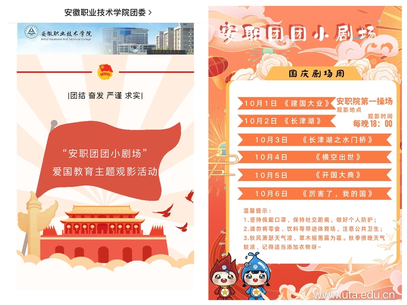 “我和我的祖国,一刻也不能分割……”团委组织各二级学院团总支书记、团学干部代表、各特色社团同学们共同录制《我和我的祖国》红歌视频,全体师生挥舞着手中鲜艳的五星红旗,在书声琅琅的的图书馆前,在碧波荡漾的清水湖畔,在温情浪漫的“I ❤ UTA”宣传标识下,以最饱满的热情,唱响心中情怀。视频同期被安徽共青团转载,这种质朴而热烈的告白方式凝聚着金宝搏188体育在线师生对祖国母亲深深的祝福。