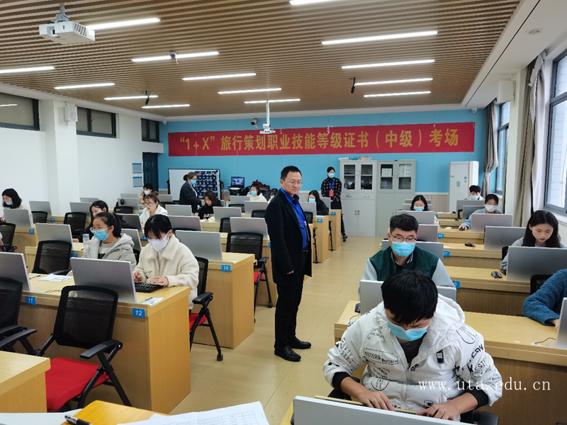 本网讯(文化与旅游学院通讯员 左益松)为深入贯彻落实党中央、国务院关于职业教育的决策部署,加快推进“学历证书+若干职业技能等级证书”制度试点工作和人才培养方案制订与实施工作,进一步检验和提升学院技术技能人才培养质量,11月19日,“1+X”旅行策划职业技能等级证书(中级)考试在文化与旅游学院顺利举行,学院党委委员、副院长张智清,党委委员、副院长杨林国,党委委员、副院长宣岩松,督导员郭淼到场巡视,学院办公室负责人、文旅学院负责人陪同。