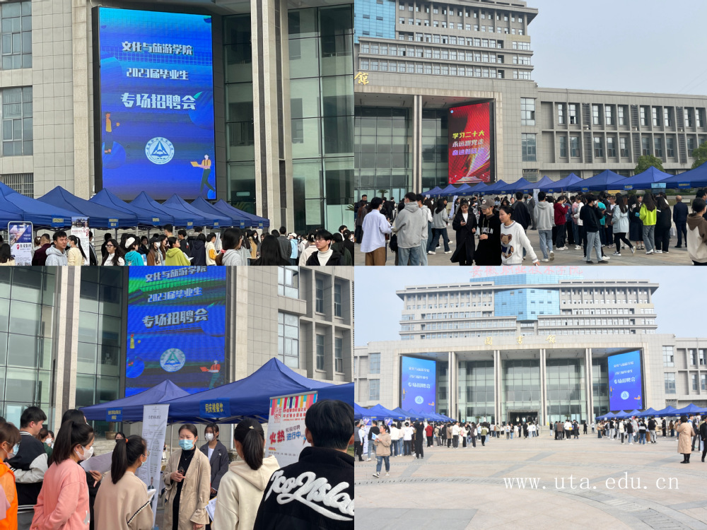 本网讯(文化与旅游学院通讯员 李丹丹)为充分发挥校园招聘的主渠道作用,强化就业服务供给,深化校地、校企合作交流,11月25日上午,学院在风华广场举办2023届毕业生文化与旅游专场招聘会。党委副书记、院长盛鹏,党委委员、副院长杨林国,党委委员、副院长宣岩松来到现场指导,文化与旅游学院党政负责人、全体毕业班专兼职辅导员和2023届毕业生参加招聘会。