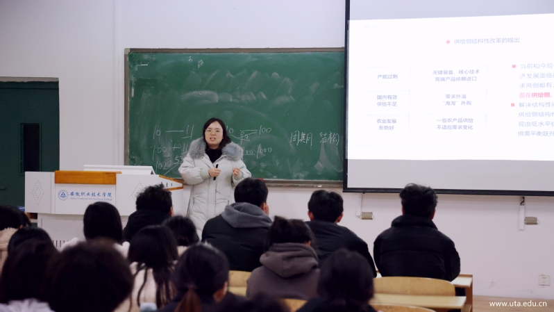 课堂上,许晓婷以党和国家事业取得的历史性成就、历史性变革为主线,积极引导学生列举家乡变化,讲述“伟大时代的历史跨越”一课。杨娟则围绕“以新发展理念引领高质量发展”主题,互动式、探究式地引导学生领悟“我国经济进入新常态”“供给侧结构性改革”“建设现代化经济体系”等概念。学生们积极参与课堂,发言踊跃。