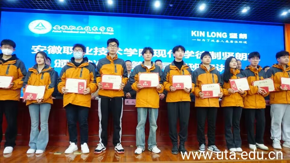宣岩松作讲话,他指出,学院与坚朗合作三年获得了可喜成绩,也积累了丰富经验,不仅为学风建设注入新动力,也为培养高素质技能型人才发挥了积极作用。他强调,校企合作、产教融合是创建现代学徒制的基础,现代学徒制的有效运行是解决学生高质量就业的有效途径,也能更好地促进职业院校教师深入服务企业,充分发挥学院与企业资源优势,更好地为社会培养高素质技术技能人才,为广大学生成长成才提供更多机会、更好的条件。他希望同学们要积极发扬坚朗公司“全力以赴、同心协力”的企业精神,努力走出一条“自强不息”“超越自我”的成才之路。