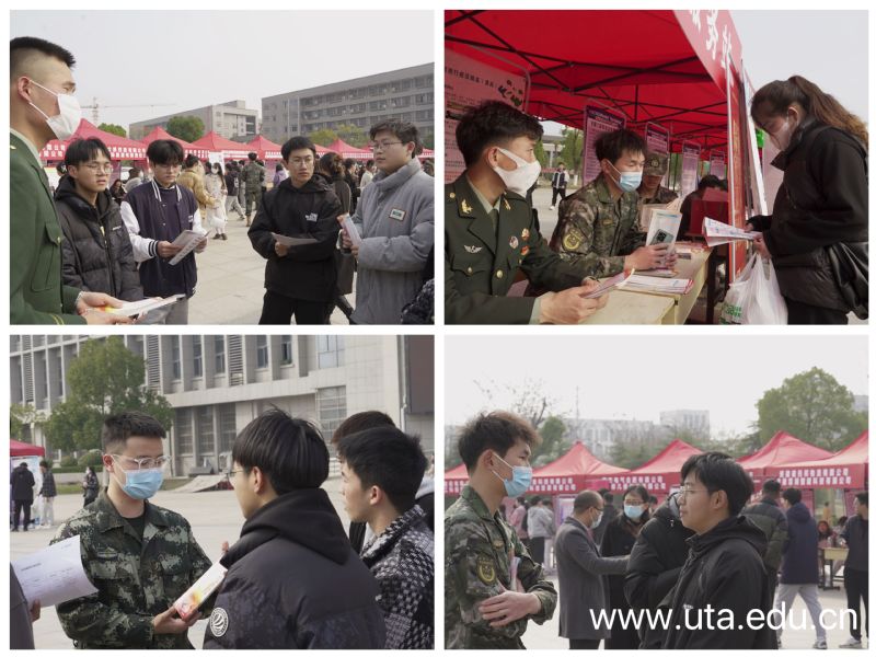 本网讯(学生处通讯员 吴丽丽 肖春苗)莘莘学子当立志,携笔从戎固国防。为适应“一年两征”新形势要求,打通征兵工作最后一公里,学生处借力2023年合肥市庐阳区“招才引智进高校”线下专场招聘会平台,抓住毕业生宣传动员的黄金期,形成“征兵+就业”工作格局,动员更多大学生、应届毕业生参军入伍。院党委书记李方泽,院党委委员、副院长宣岩松亲临现场指导征兵宣传工作。