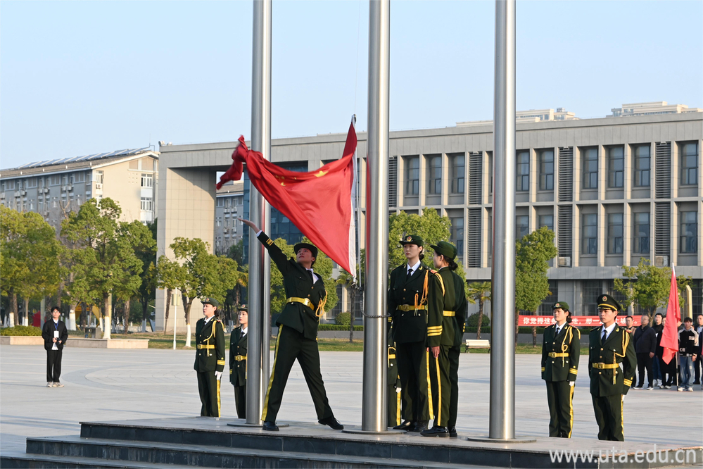 7点30分,升旗仪式开始。迎着金色阳光,英姿飒爽的国旗护卫队迈着矫健的步伐护送鲜艳的五星红旗入场,伴随着雄壮有力的《义勇军进行曲》,鲜艳的五星红旗冉冉升起,飘扬在校园上空。在场的全体师生向国旗肃立行注目礼。
