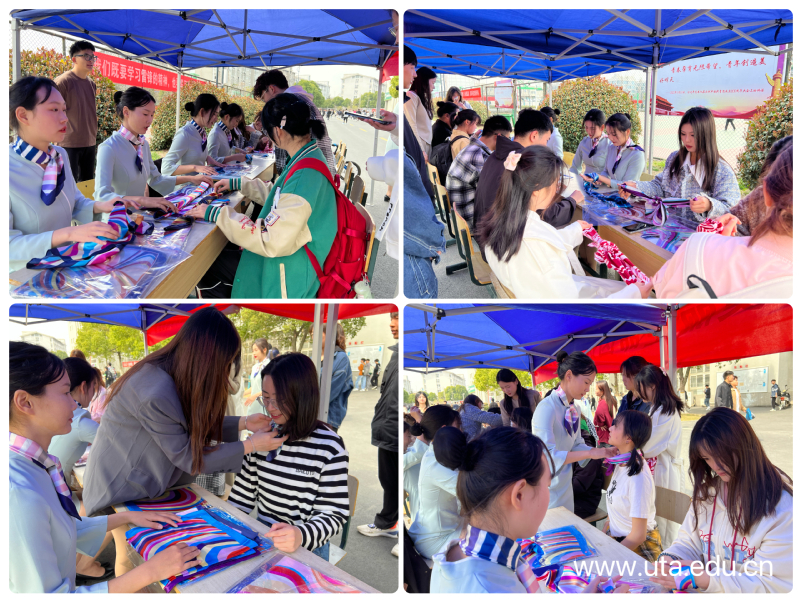 办实事,授技能。细节彰显文明,礼仪重在践行。3月7日中午,学院团委专职团干刘心洁带领大学生艺术团在西区食堂门口开展了“一对一”传授系丝巾的方法和技巧的活动。艺术团的同学们现场亲自示范,耐心讲解,指导操作步骤,帮助同学们掌握系丝巾的要领,真正为同学们办实事。优雅端庄的姿态和大方得体的举止展示了金宝搏188体育在线学子自信大方的精神风貌,活动现场同学们积极参与,气氛热烈。