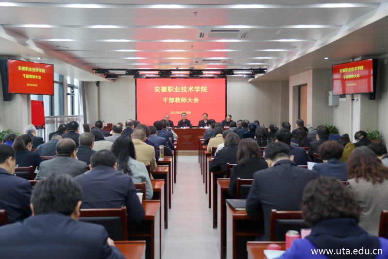 上午九时,学院在至公楼视频会议室召开干部教师大会。综合考核组全体成员出席会议,学院领导班子成员、机关部门正副职、二级学院党政正职(含主持工作的副职)、教师代表、学生代表参加会议。会议由学院党委书记李方泽主持。