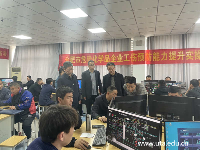 会后,在杨林国的陪同下,车学清一行实地考察了环境与生命健康学院“危险化学品企业工伤预防能力提升培训”实操现场。