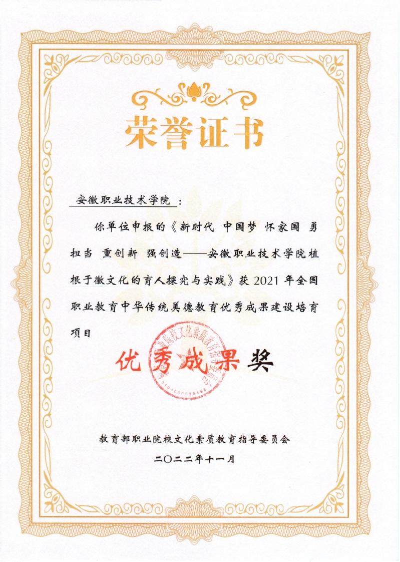 本次项目申报立足徽文化传承与创新,充分挖掘、总结、提炼传承中华传统文化的亮点和做法,形象展示了极具特色的区域文化在大学校园中的弘扬与传播,凸显了我院校园文化建设工作的新特点、新风貌、新进展。其中,许平山、俞海燕、张坛柳、任晓莉团队申报的《徽文化育人立德为本 中华经典润泽人生》获优秀品牌活动奖;俞海燕、曾宪锋、马扬梅、许平山团队申报的《浸染徽文化务实初心 传承徽商报国之志——安徽非遗融入艺术设计专业的守正创新育人实践与探索》入围案例奖;许平山、孙静、吴丰芳、洪啸锋团队申报的《新时代 中国梦 怀家园 勇担当 重创新 强创造——188bet足球比赛结果分析植根于徽文化的育人探究与实践》获优秀成果奖。