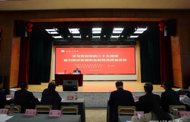 在随后举办的报告会上,李方泽从“党的二十大的主题和主要成果”“党的二十大报告的基本内容和核心要义”“学习贯彻党的二十大精神,推动职业教育高质量发展”等三个方面对党的二十大报告进行了解读和梳理,并结合部署学习贯彻习近平新时代中国特色社会主义思想主题教育工作安排,强调深入学习贯彻党的二十大精神的必要性和重要性。要聚焦习近平总书记强调的“五个牢牢把握”“九个深刻体会”等,深刻认识和领会中国共产党为什么能,中国特色社会主义为什么好,马克思主义为什么行。他强调,伟大建党精神是育人的精神武器,是强党的精神之源,要将伟大建党精神贯穿到教育教学全过程,贯彻落实到立德树人各环节,增强为全面建设社会主义现代化国家、全面推进中华民族伟大复兴的精神动力。