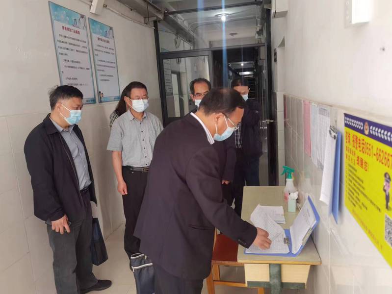 宣岩松代表学院对肖建荣一行的到来表示热烈欢迎,并对学院基本建设、疫情防控等基本情况作了简要介绍。本次调研指导深入一线,实地走访了健康驿站、疫情防控物资储备室、医务室和发热诊室,详细询问疫情防控主要做法并查看相关资料。