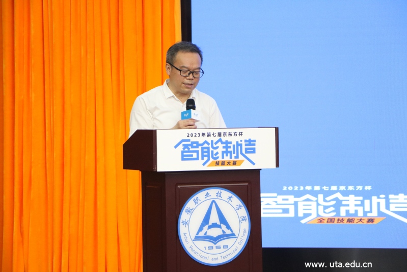 盛鹏在致辞中从学院历史沿革、办学概况、发展目标、人才培养质量提升等方面对学院作了简要介绍,并回顾了学院长期与京东方开展紧密校企合作的历史与取得的荣誉。他表示,京东方科技集团股份有限公司是一家领先的物联网创新企业,与合肥渊源颇深,188bet足球比赛结果分析作为京东方在合肥的老邻居、老朋友,多年来双方本着“优势互补、资源共享、互惠双赢、共同发展”的原则,在“学生实习就业”“教师企业实践”“企业职工培训和学历提升”“项目联合研发”等多方面建立了长期、紧密的合作关系,促进了人才培养和产业需求的有机融合。本届“京东方杯”智能制造技能大赛在188bet足球比赛结果分析启动,是学院和企业双方进一步推进产教融合,深入开展校企合作的又一项重要举措。
