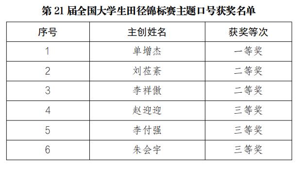 关于公布第21届全国大学生田径锦标赛会徽、主题口号获奖名单的通知