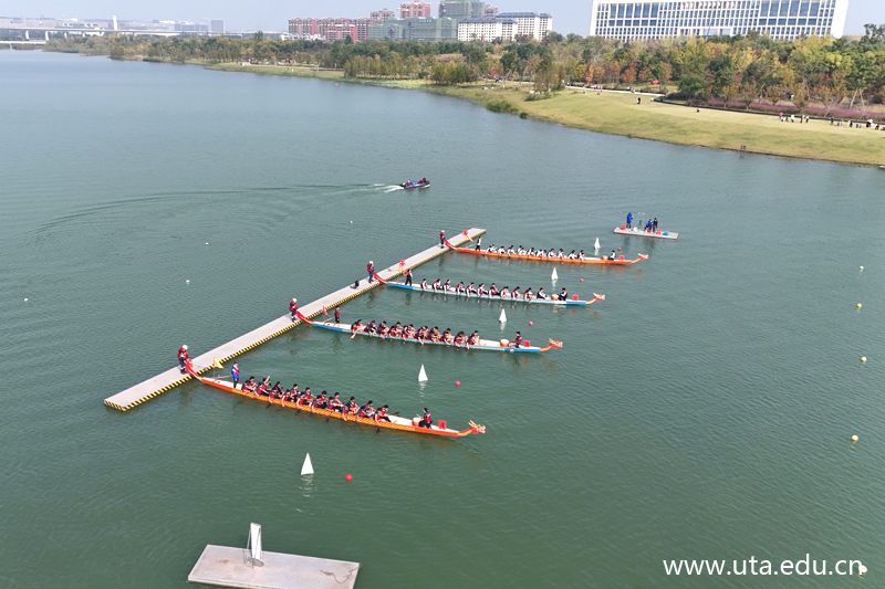 湖面龙舟竞渡,锣鼓喧天。我院选手们身着统一的队服,手持龙舟桨,迎着波浪前行,他们配合默契,力争划出最快的速度,展现出了顽强拼搏的精神。