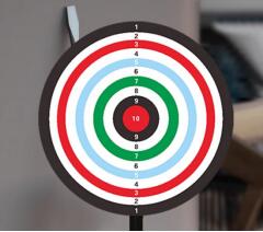 (1)选手从划定的投标线进行投镖,飞镖标盘上共有10环,中心点为10环,向外依次递减,如果飞镖投在高分和低分的界限上,以高分计。总分按投中飞镖标盘上的分值进行累加,每位选手投掷5镖,按得分高低进行排名。