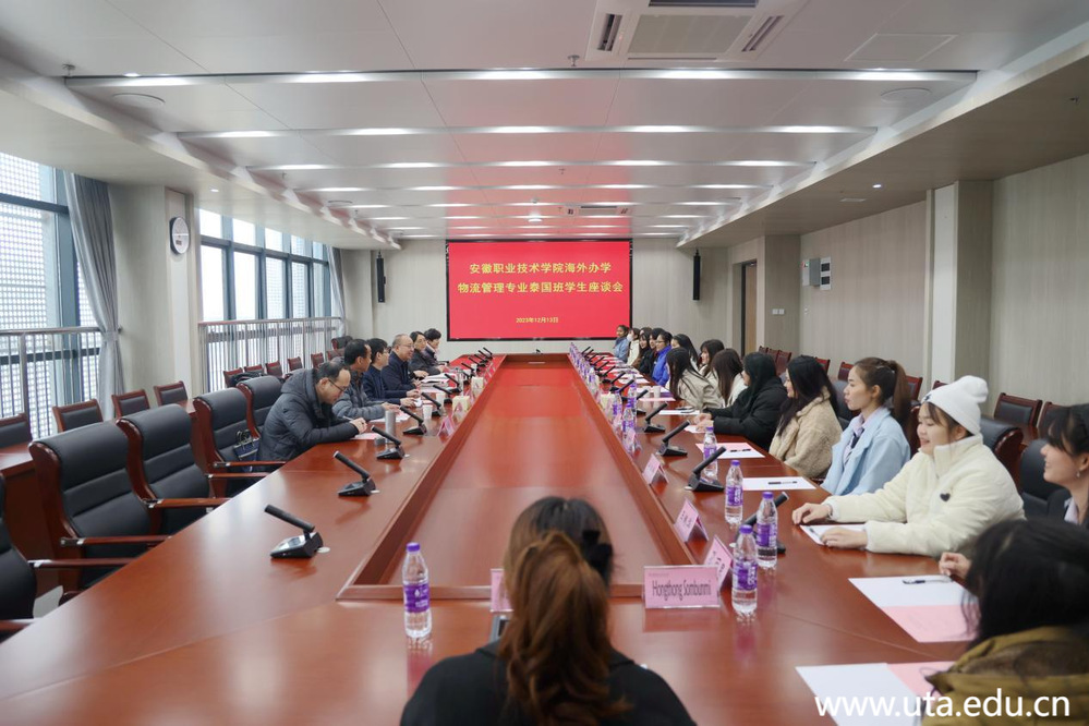 本网讯(现代商务学院通讯员 王晓伟 外国语学院通讯员 冷慧勤)12月13日,学院召开海外办学物流管理专业泰国班学生座谈会。学院党委书记李方泽,外国语学院、现代商务学院、汽车工程学院、学生处等部门相关负责人和泰国学生参加座谈会。