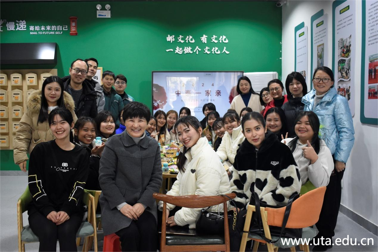 1月5日,现代商务学院携手中国邮政校园快递服务中心,在邮政驿站为物流专业泰国班同学举办了一场温馨的新年茶话会,祝贺他们圆满完成在邮政驿站的教学实践活动,也为他们即将毕业回国送行。现代商务学院副院长杜淑琳,邮政驿站负责人,物流教研室全体老师、辅导员代表、全体留学生和部分学生代表参加了茶话会。