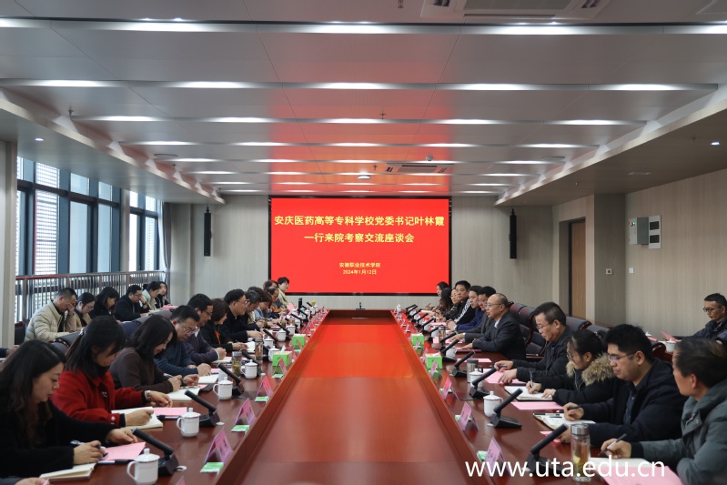 本网讯(办公室通讯员 马陕珊)1月12日下午,安庆医药高等专科学校党委书记叶林霞一行来我院考察交流。学院领导班子成员出席会议,相关部门负责人参加会议。会议由党委书记李方泽主持。