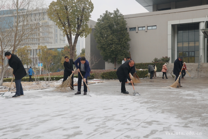 扫雪除冰小行动,保障安全大民生。行动就是最好的“融雪剂”,本次扫雪除冰活动中,教职工们用简单的行动和朴素的热情强化“立足岗位做贡献”的意识,在劳动中进一步凝聚了团结协作精神,保障了师生出行安全,展现了金宝搏188体育在线师生的精神风貌,携手共建安全、美丽、温暖的校园环境,为学院的和谐发展和新学期工作开展保驾护航。