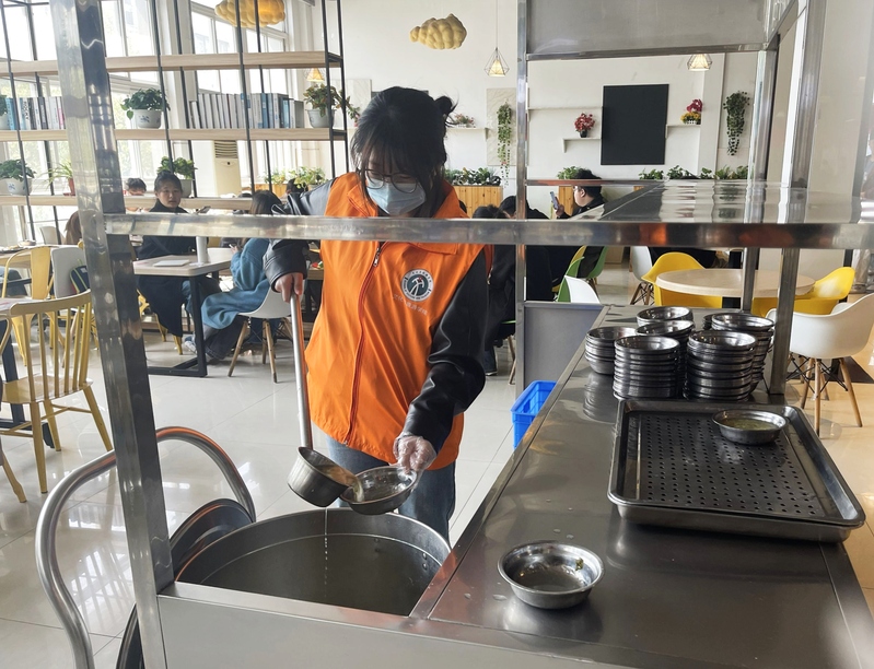 活动中,志愿者们充分发扬不怕脏、不怕累的精神,在就餐区开展卫生打扫、餐桌清洁、餐具回收、免费汤发放等工作,营造了良好健康的就餐环境。志愿者们纷纷表示:“参与食堂清洁工作,真正体会到了食堂叔叔、阿姨工作的辛苦,良好的就餐环境需要我们共同守护,希望这种活动能够持续开展下去。”