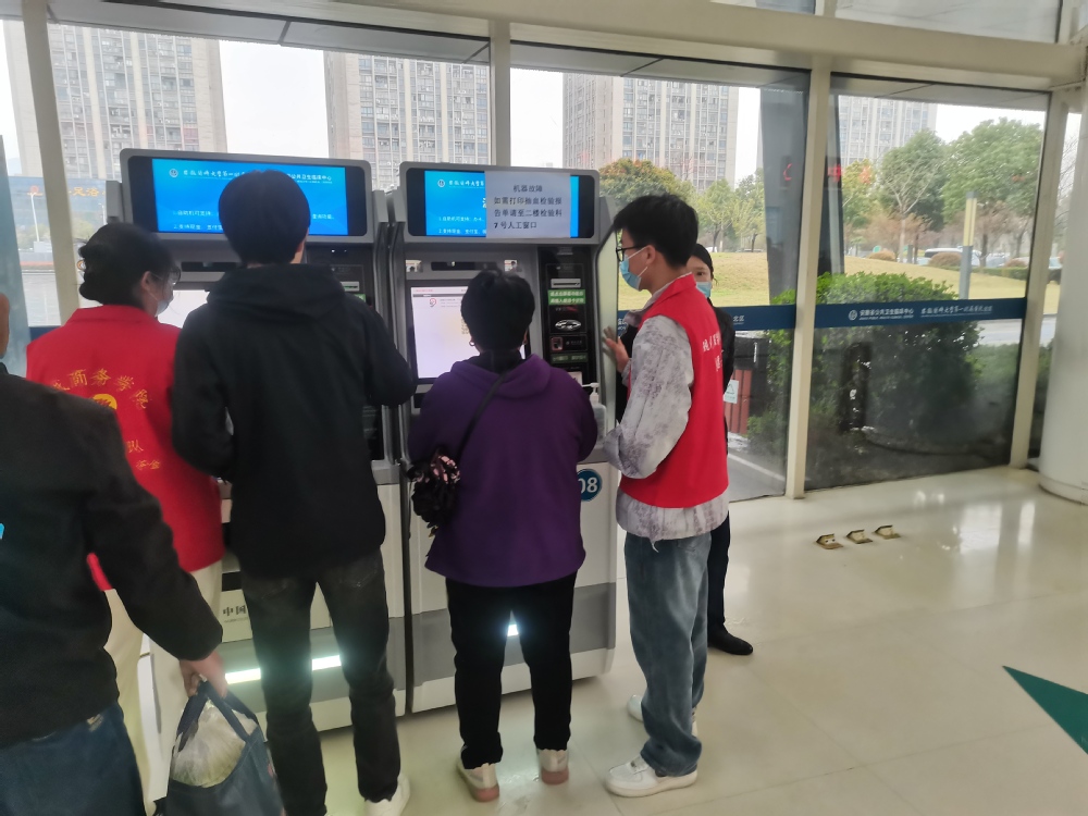 活动中,志愿者们在医院负责老师指导下进行分组并熟悉医院布局,帮助就诊患者挂号、自助缴费、维持秩序,大大缓解了患者的焦虑与无助,让前来就医的患者感受到了温暖的人文关怀。在和患者交流的过程中,志愿者们主动介绍金宝搏188体育在线“体育健康文化”、学生晨练和“在校日行8000步、为国服务50年、快乐健康100岁”的文化理念,得到患者的广泛认同和赞扬。志愿者们纷纷表示,他们不仅有机会服务社会,更重要的是感受到了奉献的快乐和成就感。