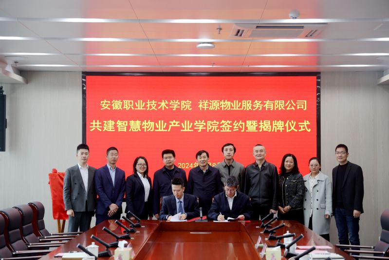 会上,杨林国和刘通代表校企双方正式签署智慧物业产业学院协议,并举行了揭牌仪式。