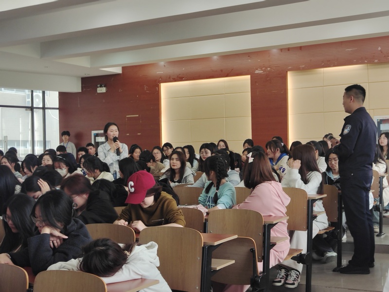 为进一步提高大学生防范电信网络诈骗意识,巩固学院安全教育工作成效,坚决遏制电信网络诈骗多发高发态势,4月10日,保卫处联合文化与旅游学院举办防范电信网络诈骗专题讲座,高教基地派出所袁家伟警官应邀授课,文化与旅游学院200余名学生代表参加活动。讲座由保卫处教师卫燕主持。