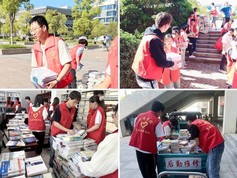 在活动现场,志愿者们秉持团结协作的精神,忙碌的身影在明媚的阳光下熠熠生辉,有的负责推车搬书,确保每一本书的安全运送;有的则在浩如烟海的书籍中穿梭,仔细核对、精心挑选、认真摆放。尽管任务繁重且琐碎,但他们毫无怨言,以细致入微的态度和坚韧不拔的毅力,圆满完成了各项工作。