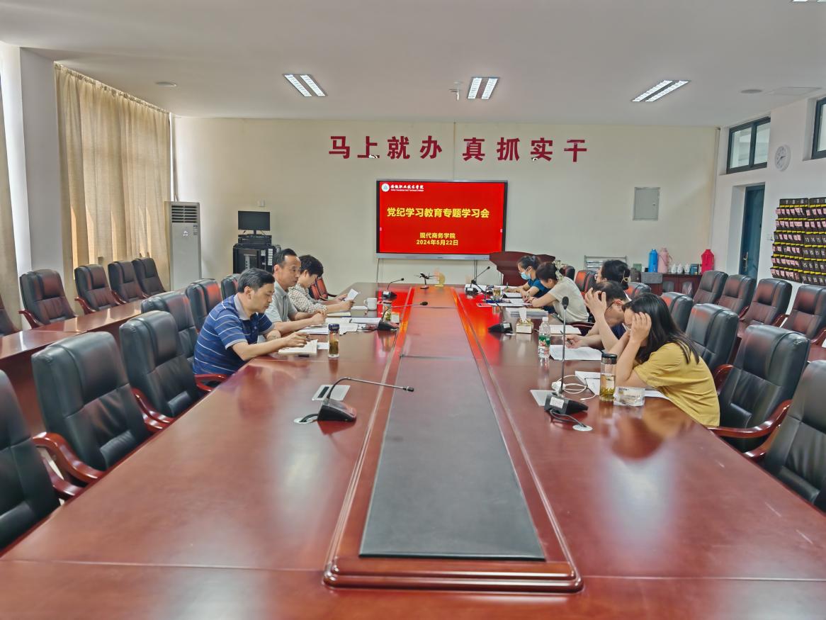 5月22日,现代商务学院召开党纪学习教育专题学习会,学院党总支委员、组织员、团总支书记、各教研室主任参加会议,会议由党总支负责人许兴旺主持。