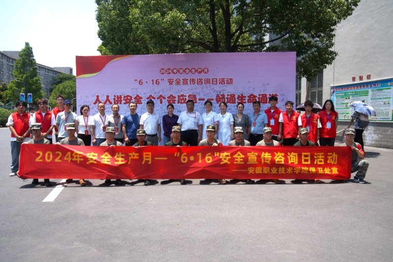 本网讯 2024年6月是第23个全国“安全生产月”。为深入贯彻落实习近平总书记关于安全生产的重要论述,扎实有效开展安全生产月活动,引导师生增强校园安全意识,自觉维护校园安全稳定环境,6月17日,学院邀请合肥市公安局新站分局国保大队、合肥市公安局交警支队新站大队、新站区消防救援大队和新站区高教基地派出所来校联合开展2024年“安全宣传咨询日”活动。党委委员、副院长张智清,党委委员、副院长宣岩松,党委委员、纪委书记李荣富出席活动,保卫处、后勤管理处、网络信息中心以及各二级学院共1000余名师生参加活动。