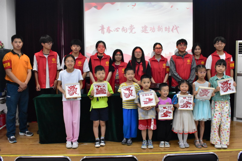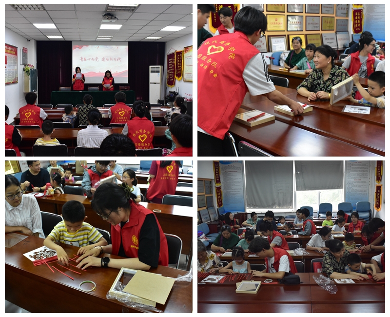 在“红色故事分享”环节,现代商务学院“水滴”志愿服务队的志愿者们用生动的语言讲述了多位革命先烈和英雄模范的感人故事。从南陈北李到红船精神,每个故事都是一堂生动的党课,让现场的小朋友们深切感受到革命前辈的理想信念与高尚情操。活动的高潮部分是精心设计的“非遗手作竹编画”,小朋友们在游戏中加深了对党史的理解,现场气氛热烈,欢笑声此起彼伏。
