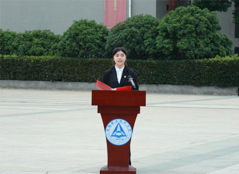 马克思主义学院党务2321班胡诗颖作题为《赓续红色血脉 凝聚奋进力量》的国旗下演讲。她号召同学们学习英烈前辈们的英雄事迹,领悟宁折不屈的革命精神,在学习党史中凝聚奋进力量,续写党的绚丽篇章。