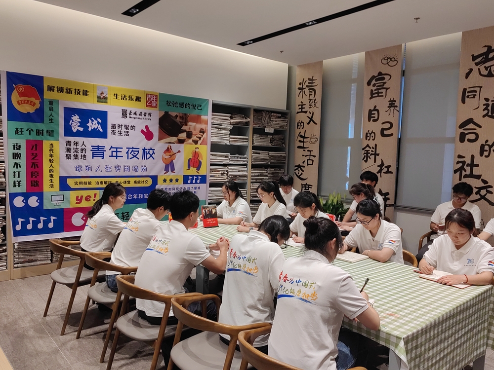为引导广大团员青年爱读书、读好书、善读书,学理论、读经典、促实干,7月10日,暑期“三下乡”蒙城支队在蒙城县图书馆“青年之家”开展《习近平与大学生朋友们》专题读书分享会,开启别样文化“夜生活”。