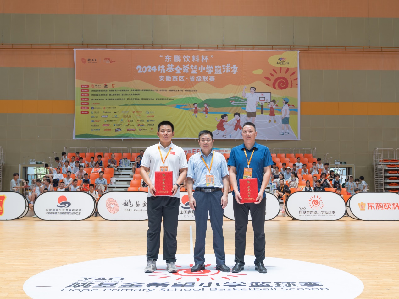 本网讯(体育健康学院)7月19日,2024姚基金希望小学篮球季安徽赛区省级联赛决赛暨闭幕式活动在安徽望江县文体中心馆举行,我院荣获“2024姚基金希望小学篮球季”安徽赛区“特别支持单位”荣誉称号,我院体育健康学院相关老师受邀参加闭幕式活动。