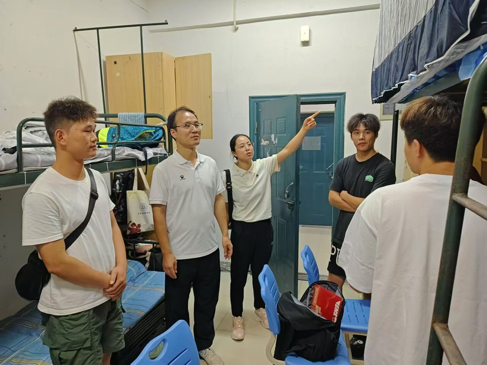 为让新生能够更快地熟悉校园环境、尽快融入校园生活,当晚班级辅导员及时召开新生开学第一课主题班会、走访新生宿舍。