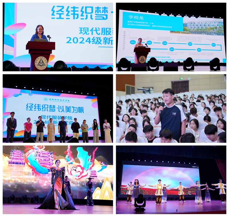 报到日晚,学院在至立会堂举行了迎新欢迎会,学院班子成员、全体辅导员和专业教师代表及2024级全体新生参加活动。活动中,各专业骨干教师与新生集体见面,向2024级全体新生表示热烈欢迎和衷心祝福。整场活动通过“迎新致辞”“专业介绍”“文艺演出”“新、老生代表发言”“师生互动答疑”等环节,呈现现代服装学院学科专业的独特魅力,并倡导新生用“学习改变命运,勤奋成就人生”金宝搏188体育在线座右铭激励个人成长成才,用“匠心怀德入职场,报党报国报家乡”的学风建设助力社会发展。现场学生互动积极、掌声不断、反响热烈。