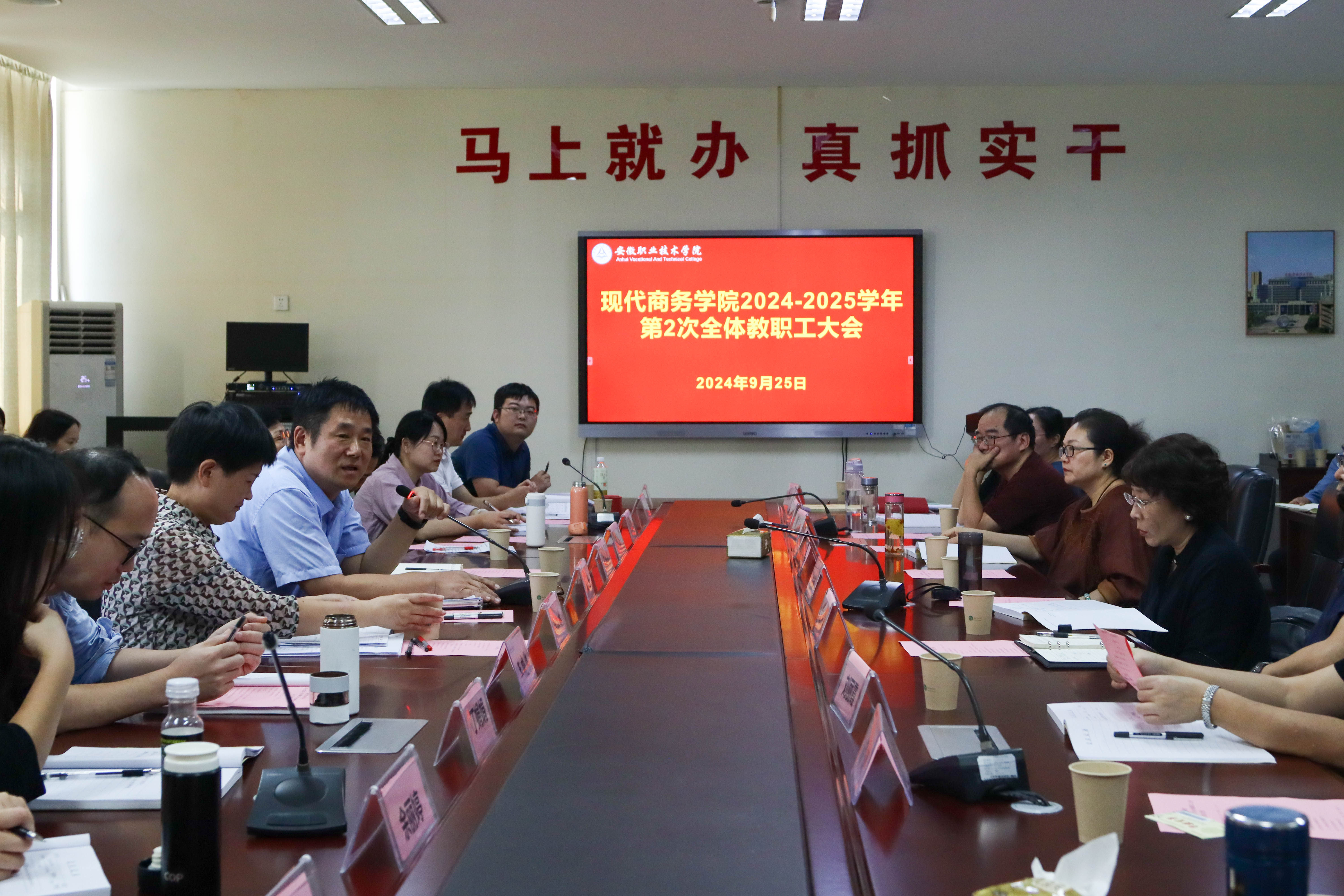 9月25日下午,现代商务学院在至勤楼3楼会议室召开全体教职工大会。学院党政负责人及全体教职工参加会议。会议由学院党总支负责人主持。