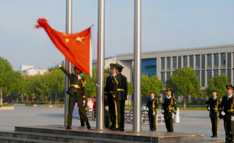 “起来!不愿做奴隶的人们!把我们的血肉, 筑成我们新的长城 ......” 9月30日,伴随着激昂的《义勇军进行曲》,学院庆国庆贺校庆系列活动建校70周年暨2024年“爱国之怀”系列活动——“同升一面国旗”在风华广场成功举行,近千名学子齐聚风华广场同升国旗、同唱国歌,热烈庆祝中华人民共和国成立75周年。院领导李方泽、张智清、宣岩松参加了升旗仪式。同升一面旗,同爱一个国,舞动的国旗像一团雄雄燃烧的火焰,映红了校园,也映红了全校师生的心田,更激励着全校师生踔厉奋发,奋勇向前。近年来,学院团委建立了以升国旗仪式为载体的思想政治引领融合推进机制,通过学思践悟等形式,把户外思政讲“新”、国防教育讲“近”、校园文化讲“浓”、淬炼技能讲“实”,推动共青团工作思想引领、教育引导、文化涵育、实践养成取得新突破、再上新台阶。
